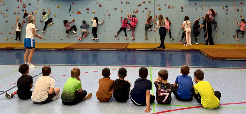 In den vergangenen Wochen nutzten einige Klassen unserer Schule das gute Wetter, um den gemeinsamen Weg zur Kletterhalle der benachbarten Carl- Bantzer-Schule in