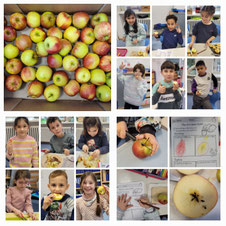 Wir bedanken uns herzlich für die schmackhaften Äpfel, die vor dem Verzehr zunächst im Sachunterricht der ersten Klassen aufgeschnitten und untersucht wurden. Die Kinder der höheren Klassenstufen befassten sich mit dem Thema Weiterverarbeitung (Saft, Marmelade) und den Möglichkeiten der Lagerung (Herstellung von Apfelringen).